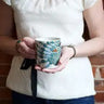 Our hand painted, ceramic peacock mug is a beautiful symbol of celebrations and freedom from fear. Our artists have captured the elegant movements of this amazing bird to make art that is both functional and fun. You can use it every day as your favorite mug or use it as a decorative object in your home to remind you to celebrate life, beauty, and joy. It measures 3.5 inches wide and holds 12 oz. The perfect size for your favorite beverage or yummy soup! Microwave safe with lead free paint. To this mug we add Eastern Shore Tea and Rustic Bakery toffee shortbread.