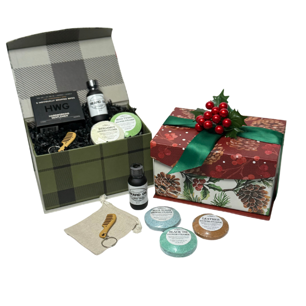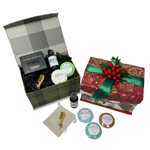 Inside, he’ll find two spa-like shower steamers in sophisticated masculine scents—ranging from fresh and zesty to warm and bold—along with beard oil, a beard comb, and a handy carrying pouch for grooming on the go.