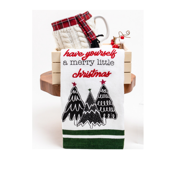 - "Have Yourself a Merry Little Christmas" kitchen towel, ideal for adding a cozy touch to your kitchen décor