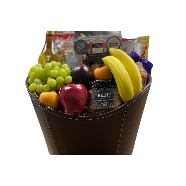 The all-fruit basket features the freshest, hand-selected fruit available at the time of shipping, carefully arranged in one of our premium gift containers. The fruit and snacks option pairs seasonal fruit with gourmet extras like locally made artisan crackers, caramels and savory snack mix for a perfect balance of sweet and savory treats.
