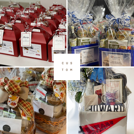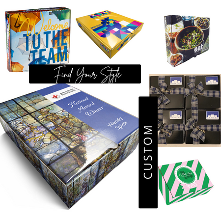 Pre-printed boxes are available, or we can work with you to create custom boxes with your colors, images and themes. Think Board meetings, virtual or in person conventions, new employee gifts and product launches.